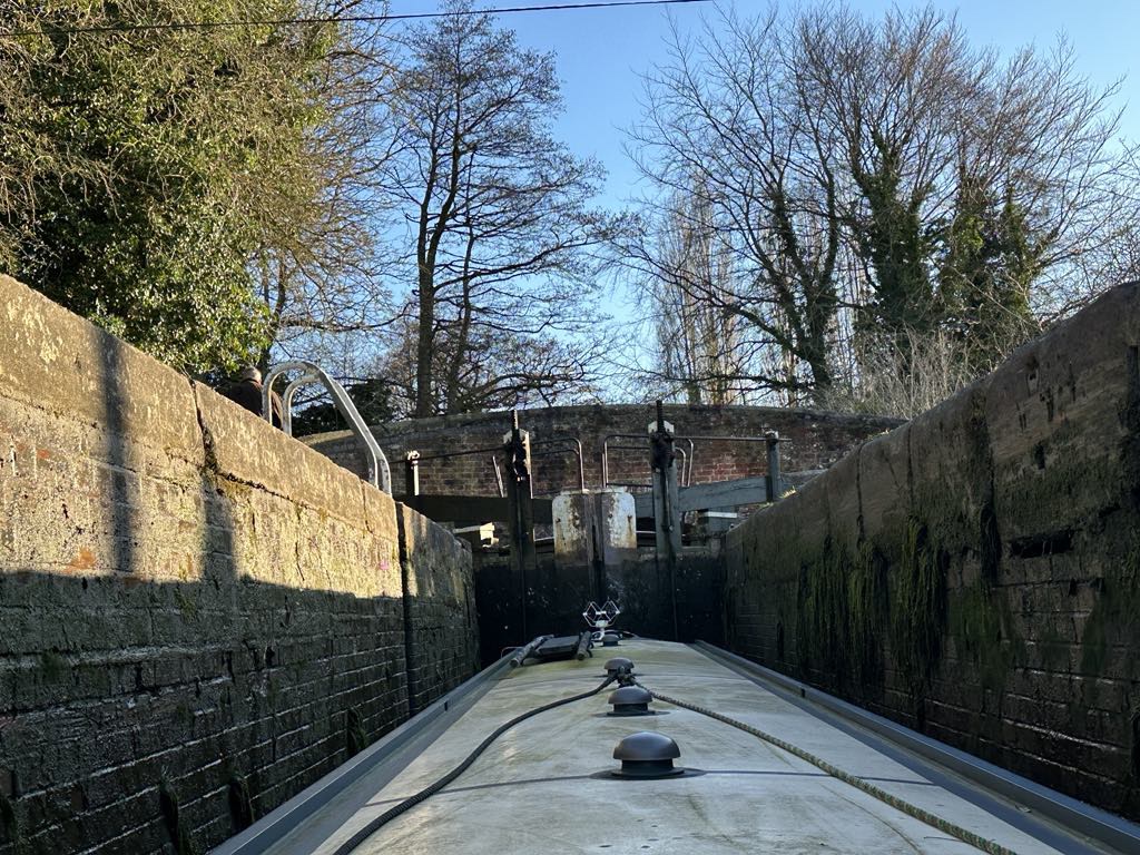 The trip down was smooth, with four locks to pass through. We turned the boat just beyond Weston, but the water was shallow, making the manoeuvre a bit trickier than expected. It took a bit of care, but we managed it without issue.